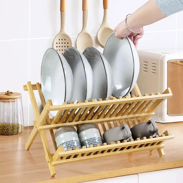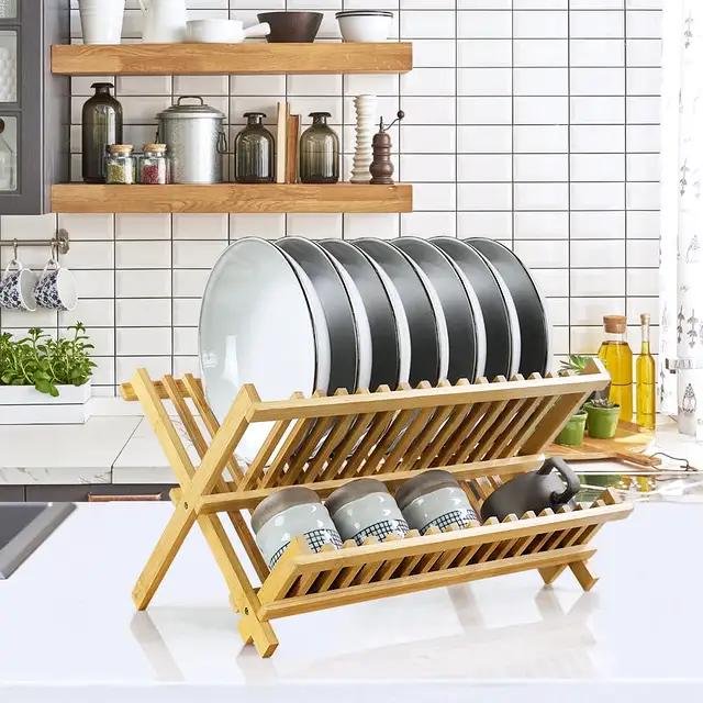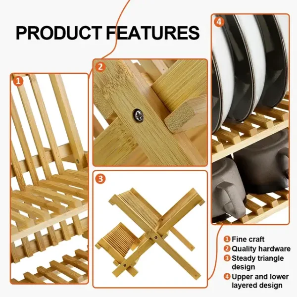 - Package Includes: 1 x Pre-assembled Folding Bamboo Dish Rack