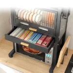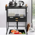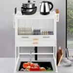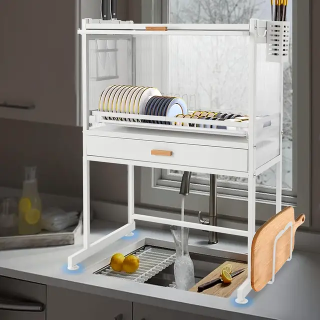 • Integrated Moisture Management: A pull-out drip tray at the base of the dish rack collects excess moisture, protecting your countertop from water damage and simplifying cleanup.