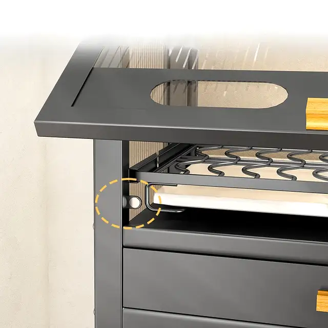 • Weight-Bearing Carbon Steel: Constructed from heavy-gauge iron and carbon steel, the chassis is built to support a large top platform for secondary appliances or bulk ingredients without shaking or deformation.