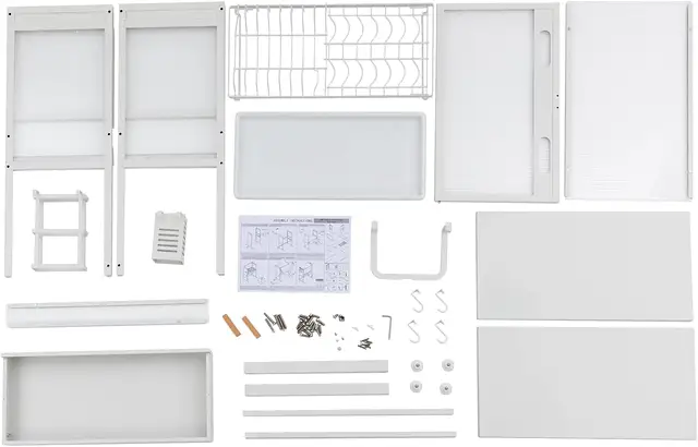 • Package Includes: Main Cabinet Structure, Knife Holder, Chopstick/Utensil Case, Cutting Board Rack, Pull-out Drip Tray, 4x Multi-functional Hooks, Adjustable Leveling Foot Mats