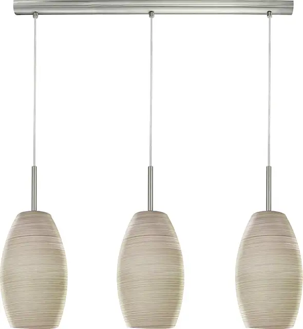 Most modern lighting lacks character, but the Eglo Batista 3 pendant focuses on a softer, more textured approach. With its hand-wiped glass shades and satin nickel finish, this fixture brings a layer of handcrafted warmth to your dining area or living space. The shades featuring a special wiping technique apply white texture to the glass by hand, creating a diffused, gentle glow that softens the room rather than flooding it with stark brightness.