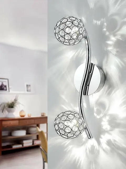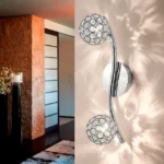 The Eglo Ribolla doesn’t just illuminate; it creates an experience. The sweeping chrome arc holds two intricate crystal spheres, transforming light into a dazzling display. The “cracked ice” texture of these shades scatters light, painting starburst patterns on your walls and ceiling. Mount it on the ceiling to brighten a hallway, or use it as a vanity light for a touch of glamour.