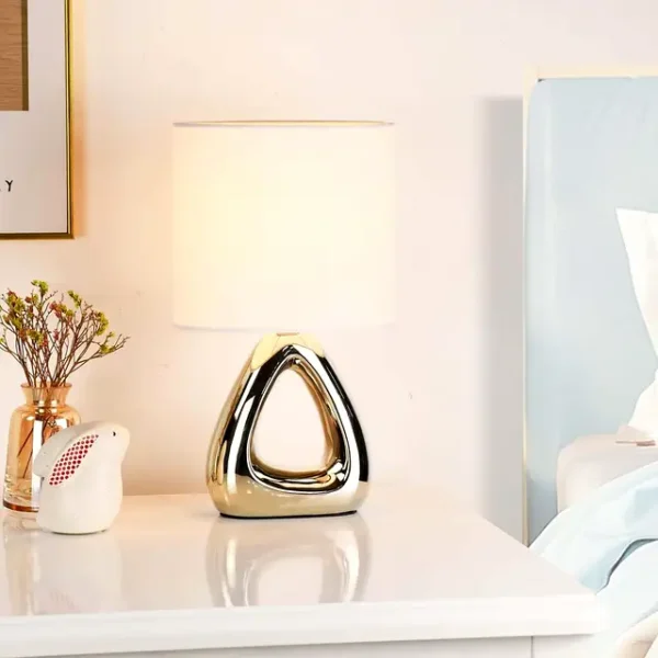 • Sculptural Ceramic Base: Crafted from smooth ceramic finished in a muted gold.