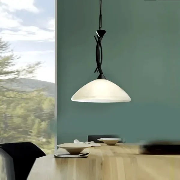 Upgrade your dining space with the Vinovo Pendant Lamp. This Austrian-designed fixture features a dark brown steel frame and a white alabaster glass shade, diffusing light for a warm, inviting glow. The E27 bulb (included) provides soft, ambient light perfect for smaller dining areas or cozy reading nooks. It’s a durable and timeless choice for any home.