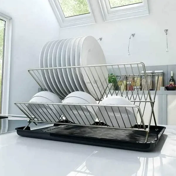 Countertops are critical real estate in any kitchen. The common dish rack, however, is a persistent occupier, often sitting empty and taking up valuable space. This Folding 2-Tier Dish Drying Rack addresses that frustration directly. Its innovative X-shaped frame allows it to collapse into a flat profile, making it easy to store or tuck away when not in use. The frame is constructed from high-temperature sprayed carbon steel, providing a rust-resistant and stable platform for both heavy stoneware and delicate glassware. The thoughtful 2-tier design maximizes drying capacity without significantly increasing the unit’s footprint.